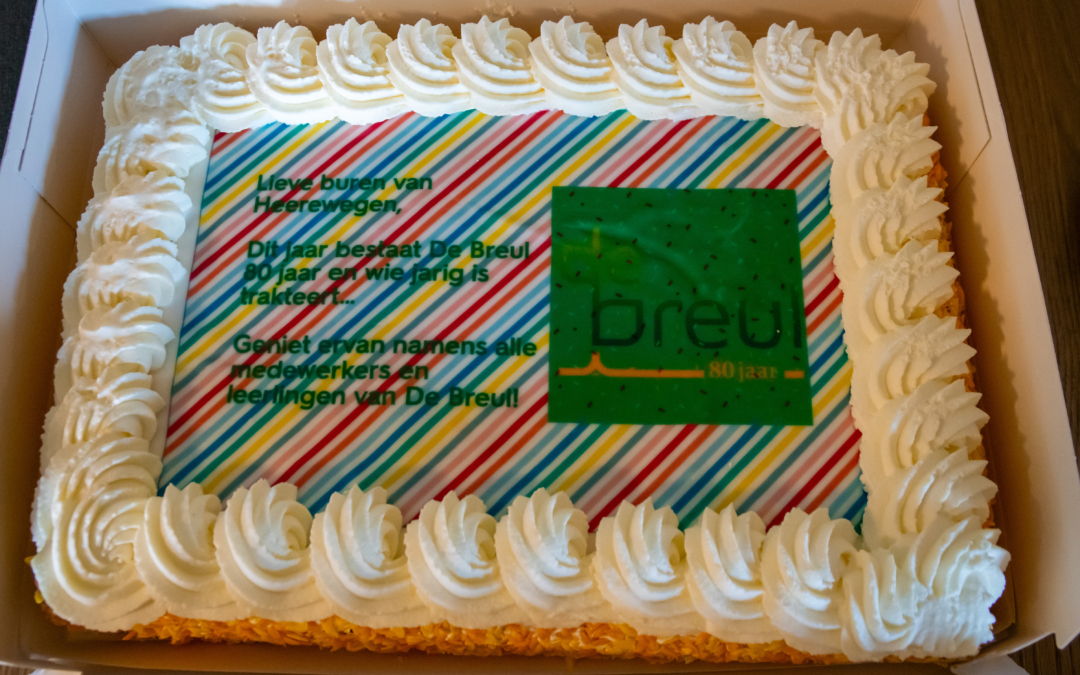 Op donderdag 21 januari tijdens de kick-off dag van ons jubileumjaar worden ook onze buren niet vergeten. Rond het middaguur bezocht een delegatie van leerlingen uit de leerlingenraad, docenten, leden van de lustrumcommissie en rector-bestuurder Sietske Erich zorglocatie Warande Heerewegen. De Breul trakteerde de ruim 120 bewoners en medewerkers op taart, een geste die door de bewoners zeer werd gewaardeerd. De school benadrukt het belang van de hechte relatie met de directe omgeving en ziet dit bezoek als een waardevolle traditie.